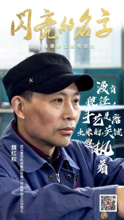 在2019年全國(guó)“最美職工”發(fā)布儀式現(xiàn)場(chǎng),中國(guó)兵器工業(yè)集團(tuán)武漢重型機(jī)床集團(tuán)有限公司機(jī)械加工公司鉗工魏紅權(quán),與來(lái)自全國(guó)各地的另外8名獲獎(jiǎng)?wù)吆?個(gè)集體,共同接受了中宣部、中華全國(guó)總工會(huì)授予的這一殊榮。
