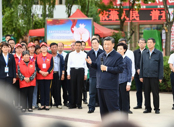 習(xí)近平總書(shū)記8日赴寧夏考察調(diào)研。當(dāng)天下午,他先后來(lái)到吳忠市紅寺堡鎮(zhèn)弘德村、黃河吳忠市城區(qū)段、金星鎮(zhèn)金花園社區(qū),了解當(dāng)?shù)赝七M(jìn)脫貧攻堅(jiān)、加強(qiáng)黃河流域生態(tài)保護(hù)、促進(jìn)民族團(tuán)結(jié)等情況。(攝影:新華社記者 鞠鵬 謝環(huán)馳 王曄 燕雁)