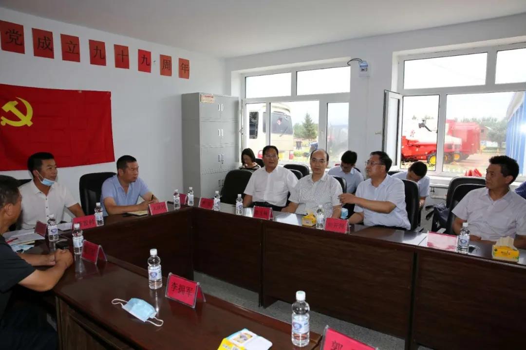 在興隆鄉(xiāng)新建村,焦開(kāi)河聽(tīng)取了大崗村、新發(fā)村和新建村關(guān)于農(nóng)機(jī)服務(wù)隊(duì)項(xiàng)目運(yùn)行情況、收益和減貧的情況介紹,詳細(xì)了解了項(xiàng)目幫扶機(jī)制及未來(lái)發(fā)展想法。焦開(kāi)河表示,農(nóng)機(jī)服務(wù)隊(duì)不僅實(shí)現(xiàn)了對(duì)貧困戶(hù)的幫扶,還可以通過(guò)創(chuàng)收、維護(hù)、解決就業(yè),帶動(dòng)農(nóng)業(yè)機(jī)械化發(fā)展,是一個(gè)可持續(xù)項(xiàng)目。他強(qiáng)調(diào),下一步要整合好各村農(nóng)機(jī)服務(wù)隊(duì),實(shí)現(xiàn)更大規(guī)模的連片種植。焦開(kāi)河專(zhuān)門(mén)叮囑集團(tuán)公司派駐大崗村第一書(shū)記吳寶明,要充分發(fā)揮駐村第一書(shū)記作用,抓好黨建工作,積極培育致富帶頭人,為大崗村后續(xù)發(fā)展奠定好基礎(chǔ)。