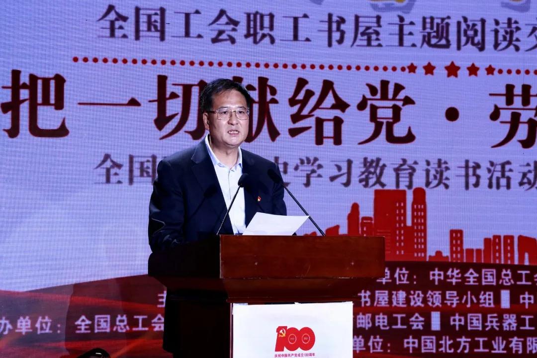 4月23日是第26個(gè)世界讀書日。在中華全國(guó)總工會(huì)指導(dǎo)下,全國(guó)工會(huì)職工書屋建設(shè)領(lǐng)導(dǎo)小組和中國(guó)兵器工業(yè)集團(tuán)有限公司共同舉辦了第五屆“閱讀經(jīng)典好書 爭(zhēng)當(dāng)時(shí)代工匠”全國(guó)工會(huì)職工書屋主題閱讀交流活動(dòng)暨“把一切獻(xiàn)給黨·勞動(dòng)創(chuàng)造幸?!比珖?guó)職工黨史學(xué)習(xí)教育讀書活動(dòng)啟動(dòng)儀式。中華全國(guó)總工會(huì)黨組書記、副主席、書記處第一書記陳剛出席活動(dòng)并講話,中國(guó)兵器工業(yè)集團(tuán)有限公司黨組書記、董事長(zhǎng)焦開河致辭。陳剛向焦開河傳授活動(dòng)火炬。全國(guó)總工會(huì)黨組成員、經(jīng)費(fèi)審查委員會(huì)主任、全國(guó)工會(huì)職工書屋建設(shè)領(lǐng)導(dǎo)小組組長(zhǎng)李曉鐘,全國(guó)總工會(huì)兼職副主席高鳳林,中國(guó)兵器工業(yè)集團(tuán)有限公司黨組副書記周艦出席活動(dòng)。