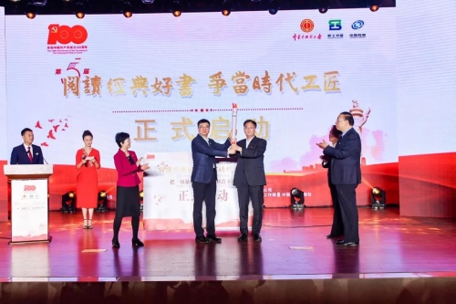 第五屆“閱讀經(jīng)典好書 爭(zhēng)當(dāng)時(shí)代工匠”全國(guó)工會(huì)職工書屋主題閱讀交流活動(dòng)正式啟動(dòng),現(xiàn)場(chǎng)進(jìn)行火炬?zhèn)魇?/p>