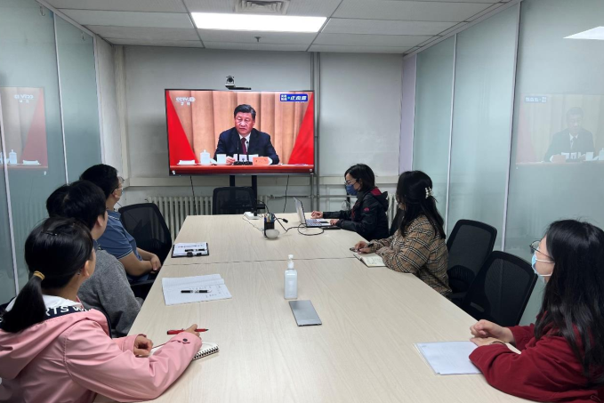 ▲西北機電工程研究所團委組織團員青年收看現(xiàn)場直播
