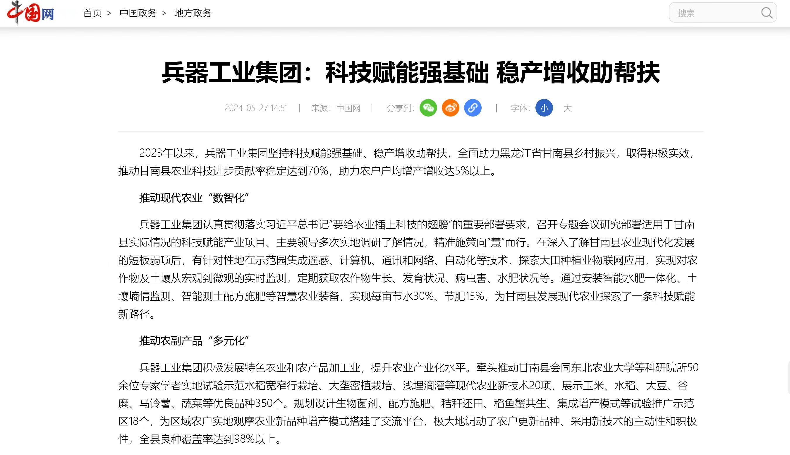 中國(guó)網(wǎng)報(bào)道兵器工業(yè)集團(tuán)科技賦能 助力黑龍江省甘南縣鄉(xiāng)村振興