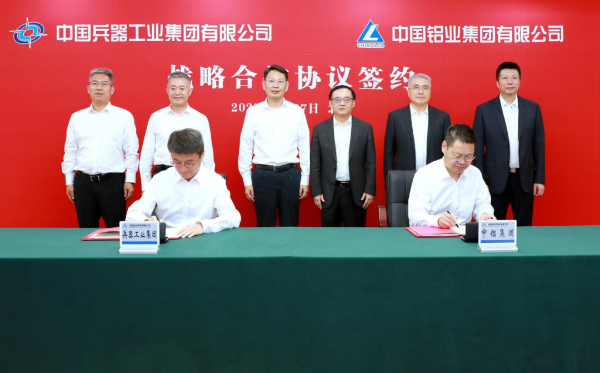 6月27日,中國兵器工業(yè)集團(tuán)有限公司與中國鋁業(yè)集團(tuán)有限公司在京簽署戰(zhàn)略合作協(xié)議。集團(tuán)公司黨組書記、董事長程福波,總經(jīng)理、黨組副書記馬云雙與中鋁集團(tuán)黨組書記、董事長段向東,總經(jīng)理、黨組副書記王石磊進(jìn)行了座談交流并共同見證簽約。集團(tuán)公司黨組成員、副總經(jīng)理閆哲、史志榮;中鋁集團(tuán)黨組成員、副總經(jīng)理田永忠、魏成文出席活動(dòng)。閆哲、田永忠分別代表雙方簽署協(xié)議。